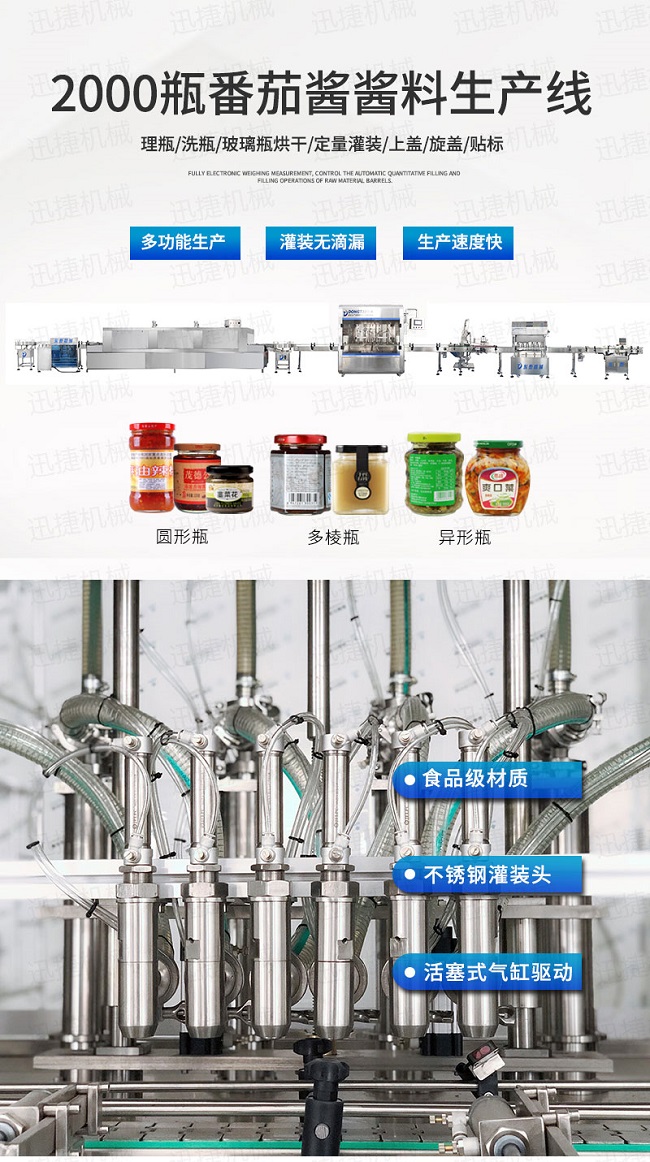 自動化醬料灌裝旋蓋貼標生產線優勢: