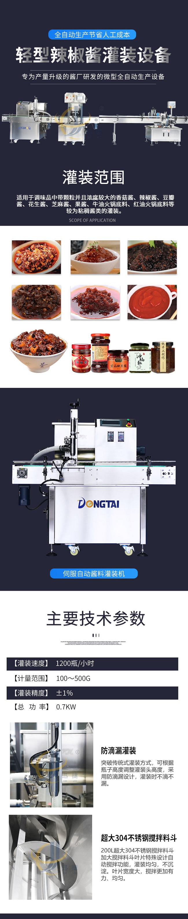這款小型辣椒醬灌裝生產(chǎn)線是本公司專為產(chǎn)量升級(jí)的醬廠研發(fā)的微型全自動(dòng)生產(chǎn)設(shè)備,適用于調(diào)味品中帶顆粒并且濃度較大的香菇醬、辣椒醬、豆瓣醬、花生醬、芝麻醬、果醬、牛油火鍋底料、紅油火鍋底料等較為粘稠醬類(lèi)的灌裝。