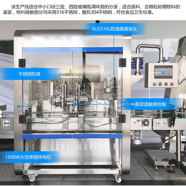 7、牛肉醬灌裝機(jī)設(shè)備輔料添加料可調(diào),精準(zhǔn)方便,提高自動化程度。