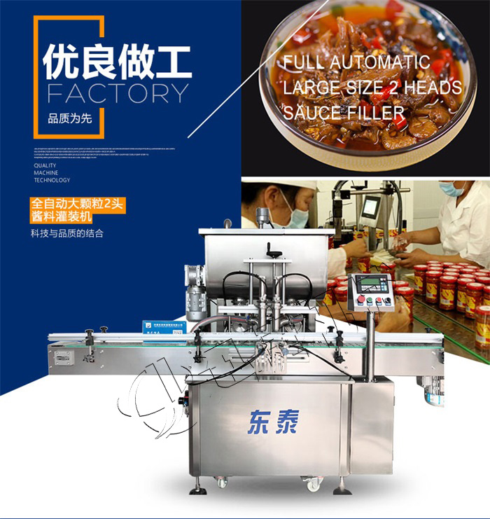 醬料灌裝機采用活塞式灌裝原理,適用于調味品中帶顆粒并且濃度較大的辣椒醬、豆瓣醬、花生醬、香菇醬、果醬、牛油火鍋底料、紅油火鍋底料、蝦醬等較為粘稠醬類的灌裝。